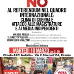 Il No al referendum nel quadro internazionale:clima di guerra e attacco alle magistrature e ai media indipendenti Martedì 10 marzo 2026 • ore 21.00Circolo ARCI Isolotto “Paolo Pampaloni APS” • Via C. Maccari 104, Firenze Ne parliamo con: Modera Massimiliano Andretta Nel pieno della [...]